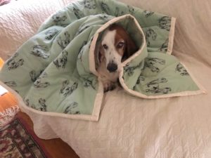 Howllo Fellow Basset Hound and refurbished Gully blanket lovers…Well, the day finally came when we thought the Gully was on it’s last short legs…It was so loved that it was fraying all around the edges and rips and tears were taking their toll. The famous Gully was Emma’s way back staring in 2006.